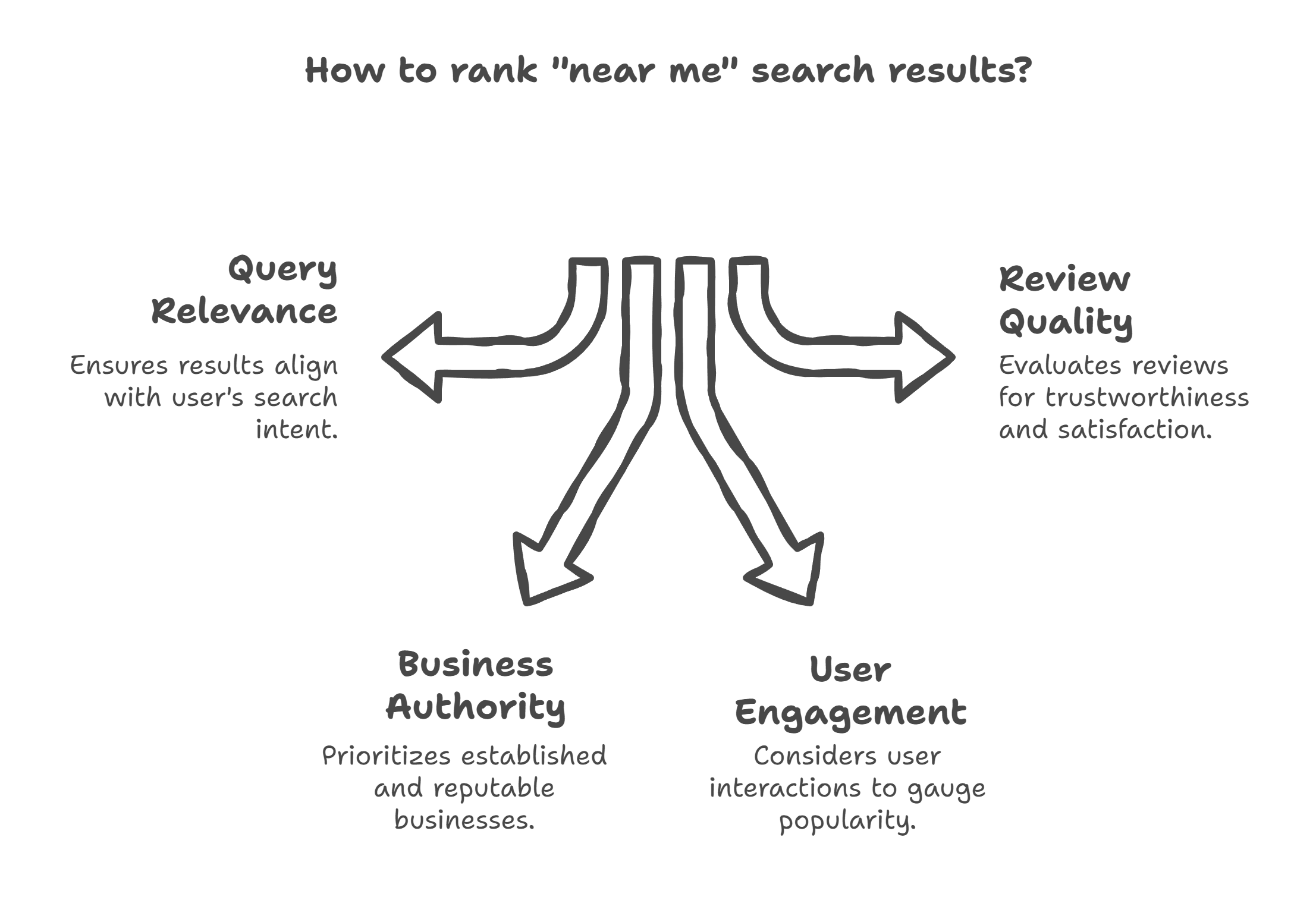 While “near me” searches continue expanding, physical distance alone no longer determines rankings. Google’s current algorithm evaluates: